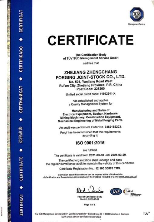 公司已获得TUV公司质量体系:IATF 16949 ISO 9001,环境管理体系:ISO 14001,职业健康安全管理体系:ISO 45001,测量管理体系:ISO 10012《测量管理体系-测量过程和测量设备的要求》标准的要求,被评定为省级技术研发中心,浙江省高新技术企业,并拥有自营进出口权。